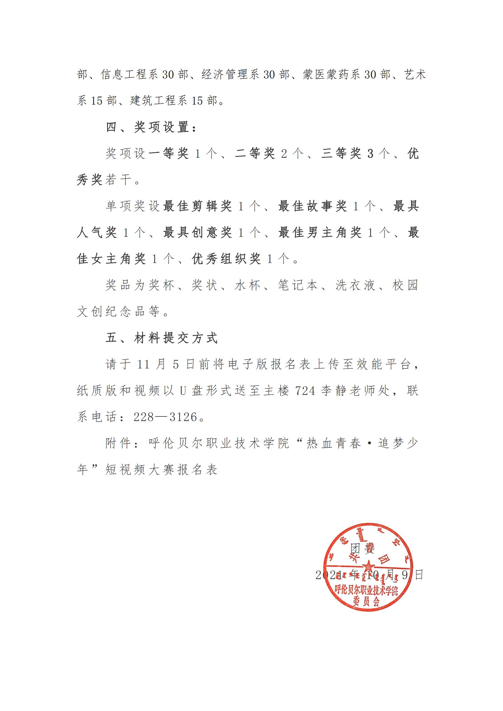 24号 关于举办呼伦贝尔职业技术学院“热血青春·追 梦少年”短视频大赛的通知