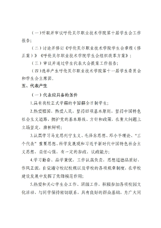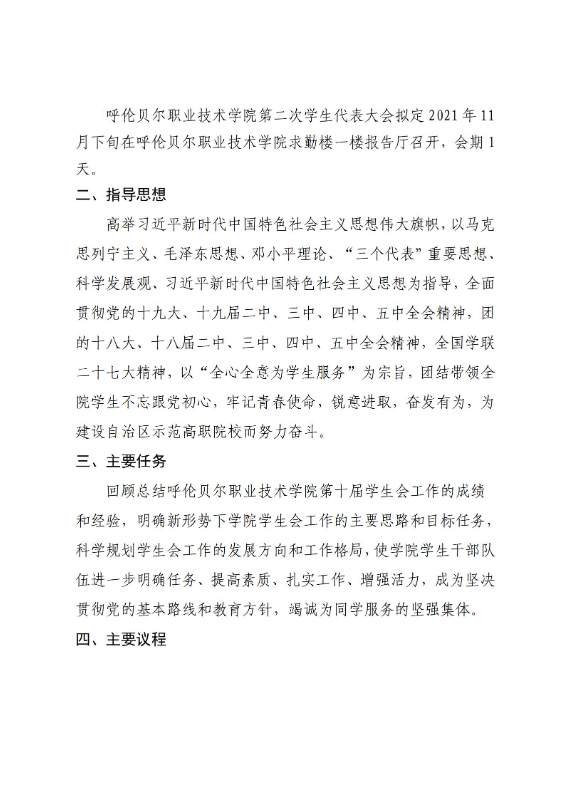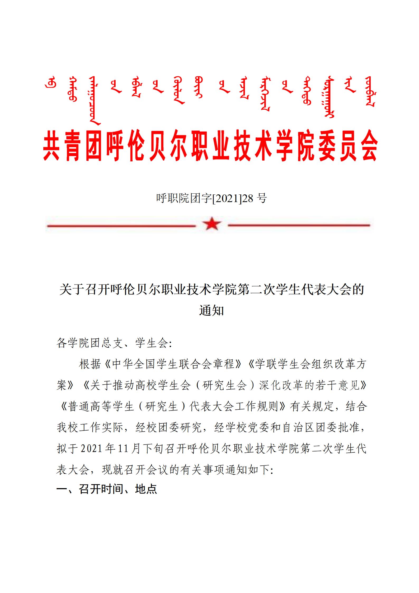 28号 关于召开呼伦贝尔职业技术学院第二次学生代表大会的通知